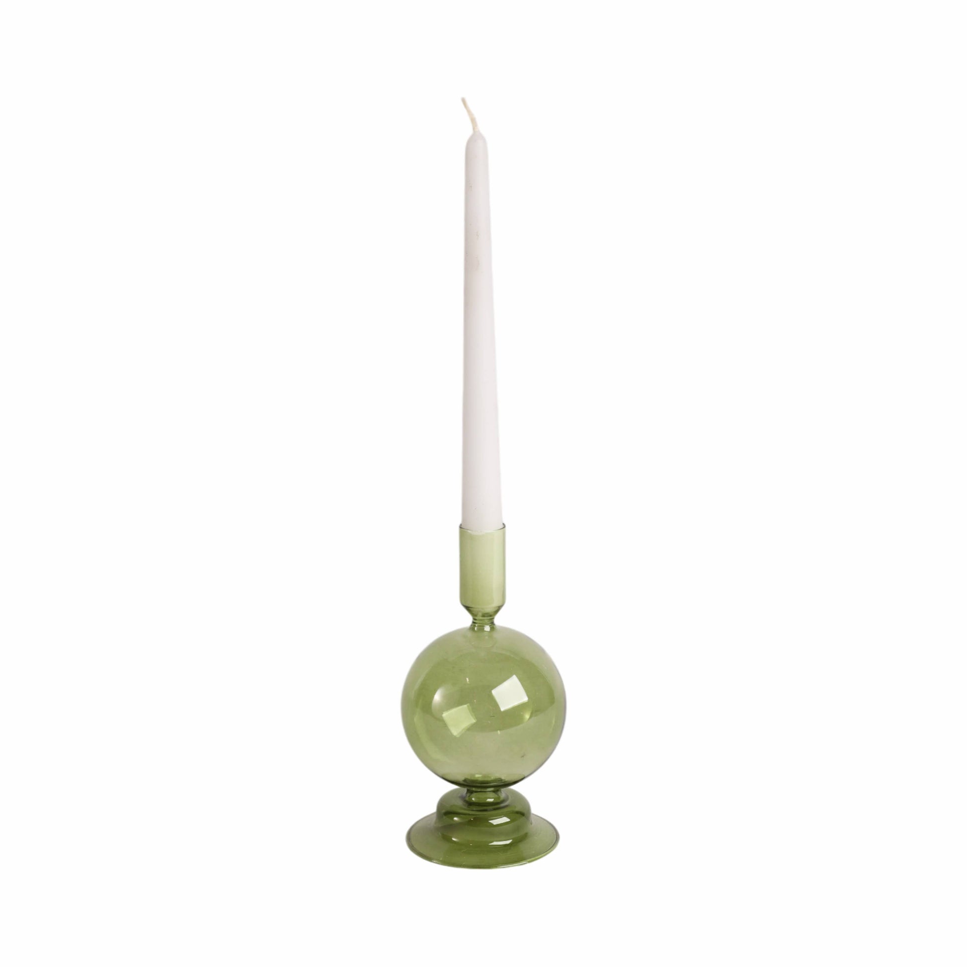 Glass Abstract Bubble Taper Candle Holder - Green 7 in.