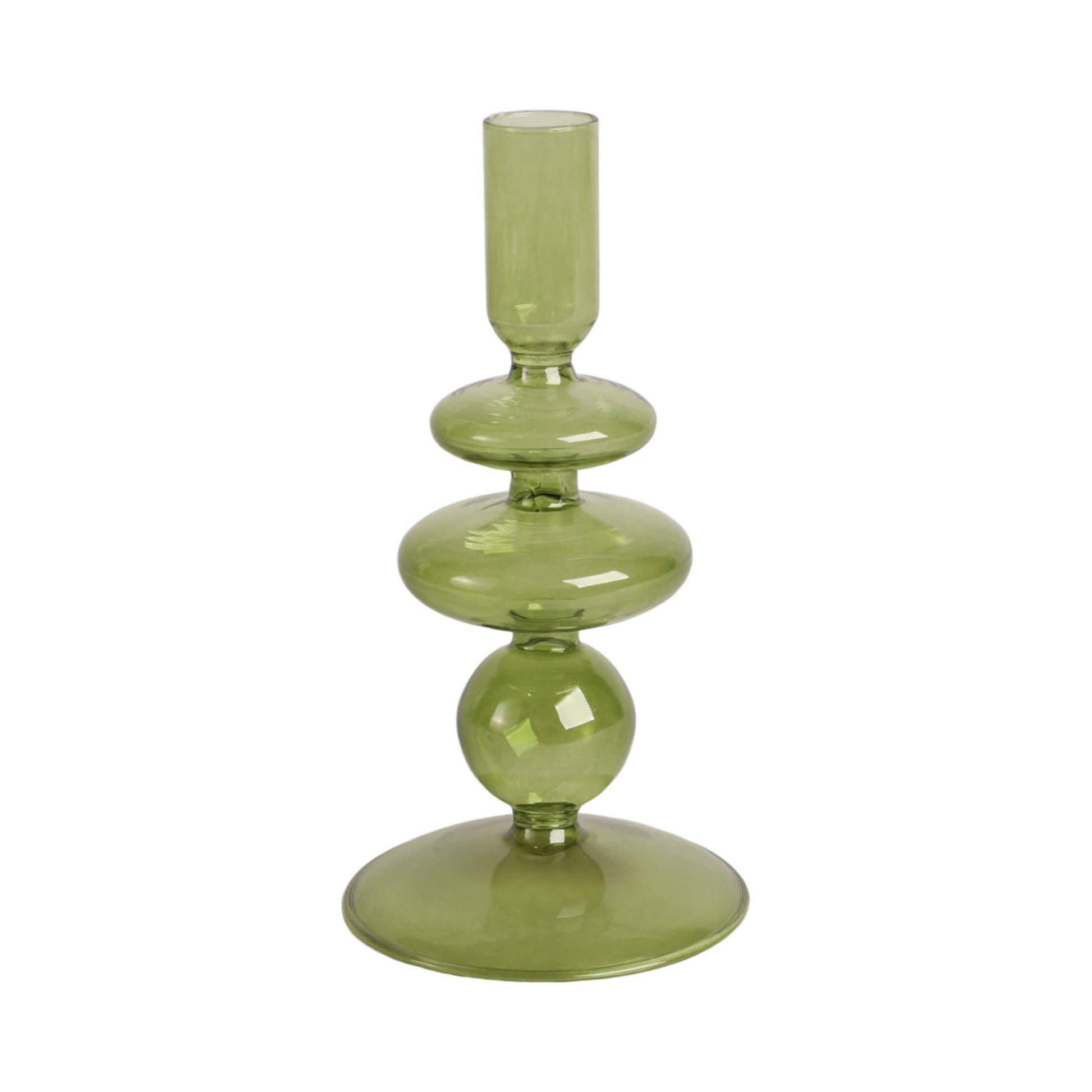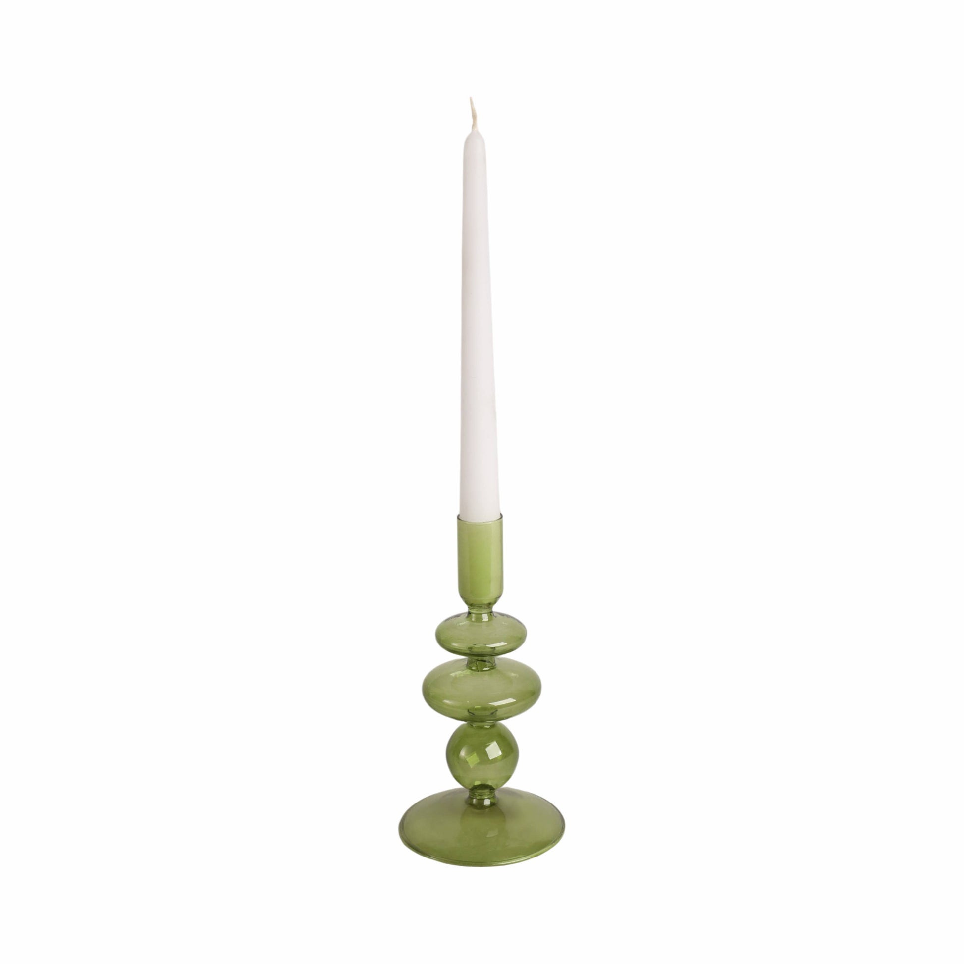 Glass Vintage Bubble Taper Candle Holder - Green 7 in.